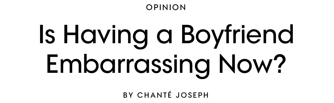 I read an article that was published on Vogue in October last year featuring the following headline “Is having a boyfriend embarrassing now?”. It basically questions and low-key judges women on the internet for being obsessed with their boyfriends. On the other end women start to form an obsession with not being identified as, what Chanté Joseph calls, the “boyfriend-girl”. Either way, everyone seems to be obsessed once again and it surely aims to serve the same purpose: engagement. Whether you are promoting boyfriend or live, love, laugh you want the follows- a uniting obsession in the age of social media. We are pointing fingers, judging, declaring our obsession to be THE one- yet we are all just girls on the internet trying to build character. We are playing SIMS in real life- party girl, vanilla girl, workout girl, boyfriend girl, no boyfriend girl. Whatever girl! I obsess therefore I am- something?!